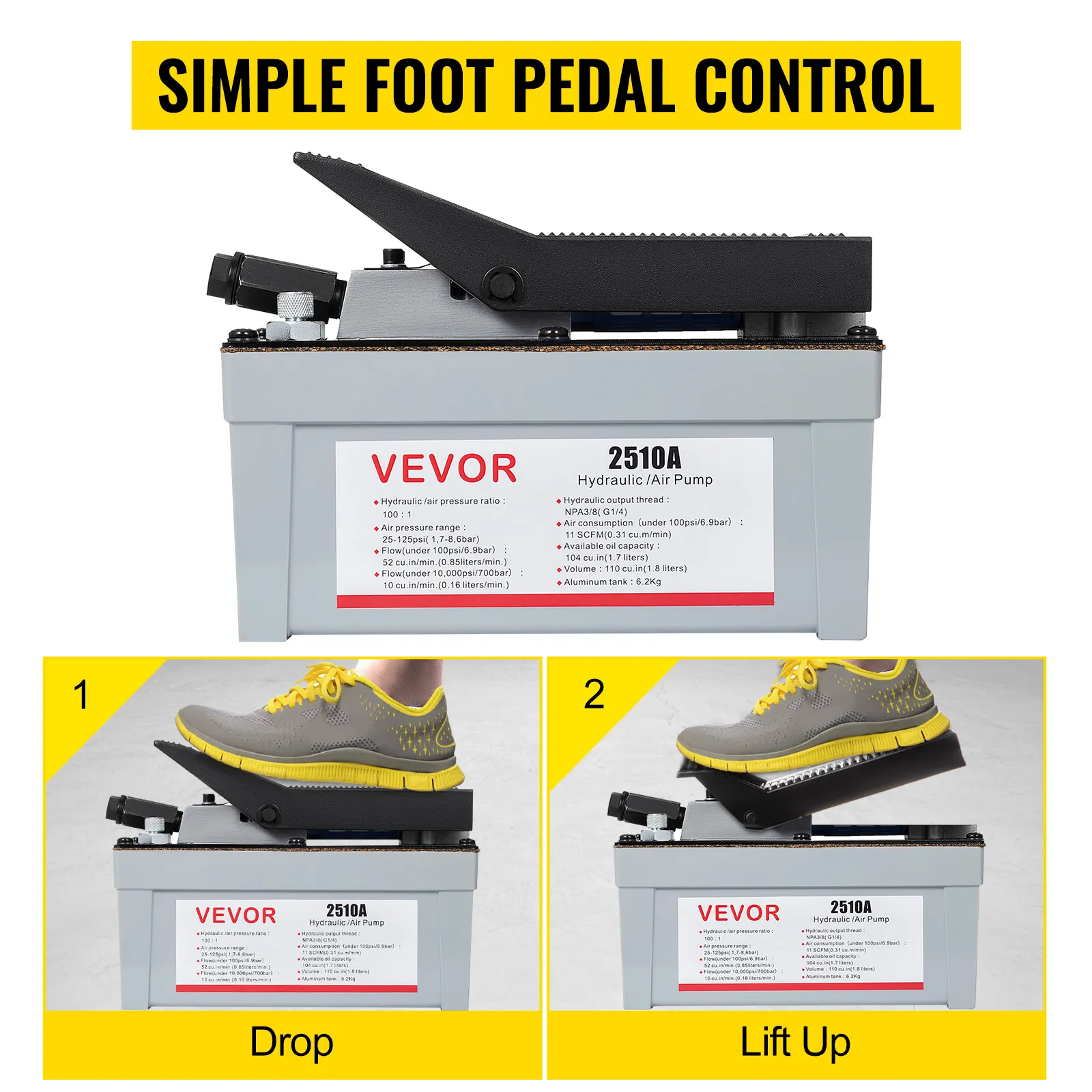 Die Hydraulikpumpe verfügt über ein benutzerfreundliches, fußbetätigtes Design für eine einfache Steuerung und Bedienung, die Zeit und Arbeit spart und eine starke Leistung bietet.