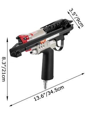 Das pneumatisch angetriebene Werkzeug der Schweineringpistole hat eine robuste Kohlenstoffstahlkonstruktion. Es bietet effizientes und festes Umreifen. Die kompakte Größe ermöglicht ein einfaches Tragen. Luftkompressor: 70-100 psi.