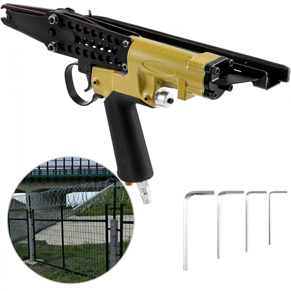 Die pneumatische Schweineringpistole ist ein perfektes Werkzeug für die Umreifung oder Befestigung von Zäunen, Drahtkäfigen, Autopolstern, Bettzeug, Geländern, Federkernmatratzen und anderen Bindungen.