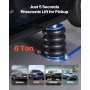 6 t Tragkraft: Dieser Luftfederwagenheber trägt bis zu 6 t (13.227 lbs) und eignet sich für Limousinen, SUVs, Pickups und Lkws. Der verstärkte, vierlagige Luftfederbalg und die verbreiterte Grundplatte gewährleisten eine starke und stabile Hebeleistung.