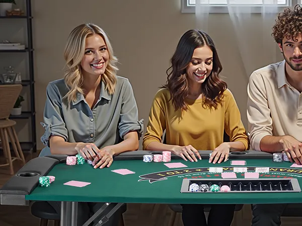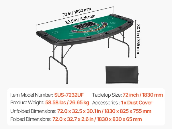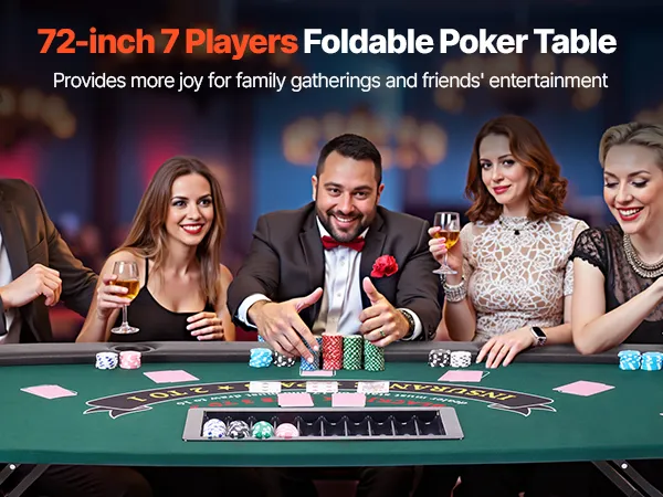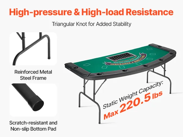 Geräumiger & klappbarer Pokertisch: Unser halbovaler, klappbarer Pokertisch (183 cm) bietet Platz für bis zu sieben Spieler und bietet ausreichend Platz für jeden Spieler. Geeignet für Blackjack, Texas Hold'em und andere Kartenspiele – für ein Spielerlebnis im Las Vegas-Stil zu Hause