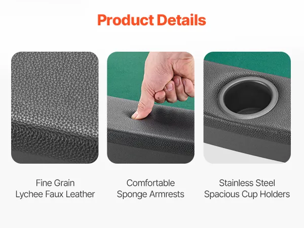 Wasserdichte & weiche Polsterung: Die Armlehnen dieses tragbaren Pokertisches sind mit dickem Schaumstoff gepolstert und mit wasserdichtem Kunstleder umwickelt. Das robuste Design stützt Ihre Arme und Ihren Körper und schützt Sie vor Verschütten und Unbehagen