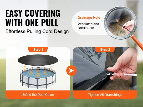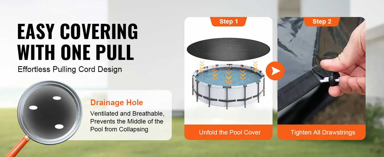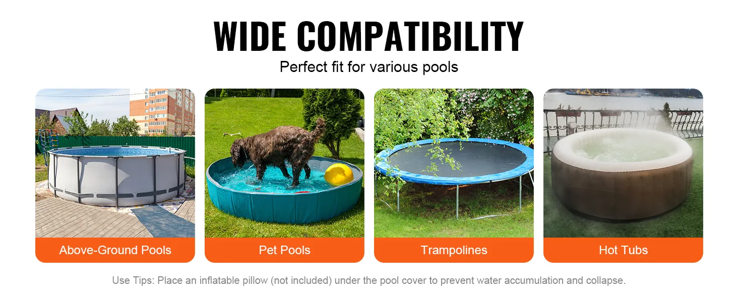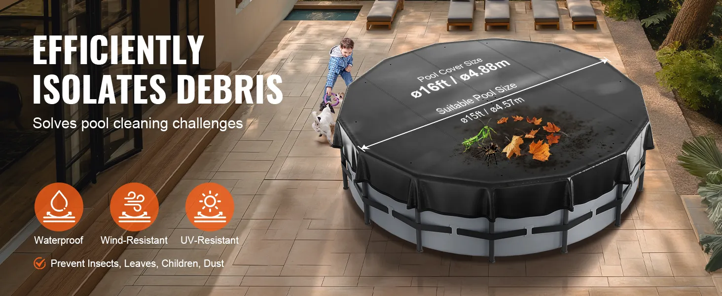 Die VEVOR-Poolabdeckung ist strapazierfähig und wetterbeständig. Sie hält rauen Wetterbedingungen stand, darunter starkem Regen und starkem Wind. Diese Haltbarkeit stellt sicher, dass die Abdeckung viele Saisons hält. Das langlebige Material bietet hervorragenden Schutz für Ihren Pool. Das Design ermöglicht es, den Elementen standzuhalten, ohne zu reißen oder sich abzunutzen. Zu wissen, dass Ihr Pool gut geschützt ist, gibt Ihnen Seelenfrieden. Das robuste Design macht diese Abdeckung zu einer zuverlässigen Wahl für diejenigen, die in unvorhersehbaren Wetterlagen leben.