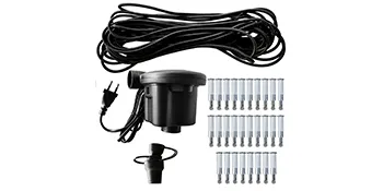 Die Sicherheits-Poolabdeckung kann bei Nichtgebrauch aufgerollt und gefaltet werden. Bei Gebrauch wird die Poolabdeckung mit stabilen Seilen und Schrauben straff gezogen. Die elektrische Luftpumpe wird zur einfachen Installation mitgeliefert.