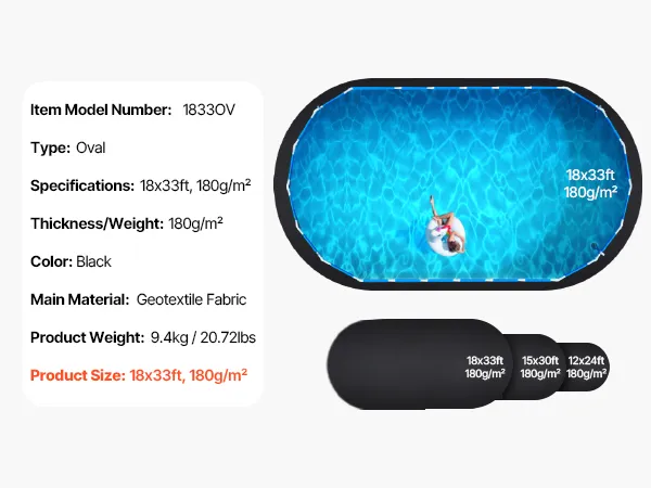 Dicke Poolfolienunterlage: Diese ovale Poolfolienunterlage aus hochfestem Material verhindert wirksam Schäden durch scharfe Gegenstände wie Steine, Baumwurzeln und Glas, verlängert die Lebensdauer des Pools und reduziert kostspielige Wartungs- und Austauschkosten, sodass Sie den Sommerspaß beruhigt genießen können.