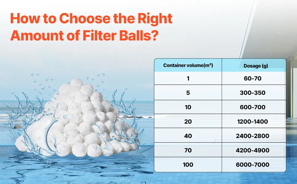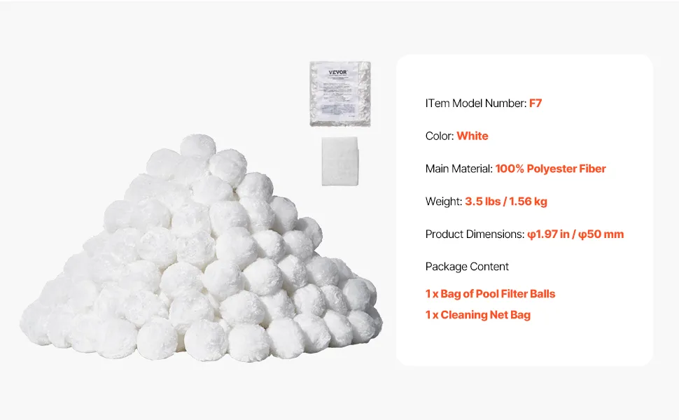 Mit überragender Filtergenauigkeit, starker Adsorption und schneller Filtergeschwindigkeit bieten unsere Poolfilterbälle eine beeindruckende Leistung. Nur 700 g Filterbälle können 25 kg herkömmlichen Sand ersetzen und sind somit ein effizienter und platzsparender Ersatz.