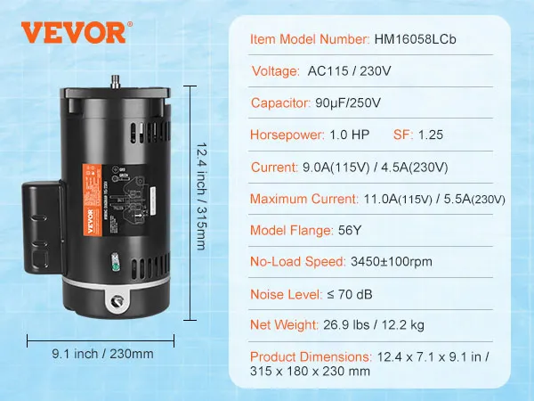Der 1-PS-Poolpumpenmotor von VEVOR ist auf leisen und effizienten Betrieb ausgelegt. Dieser Motor hat einen Geräuschpegel von 70 dB und ist damit leiser als andere Modelle. Er läuft ruhig und sorgt für eine gleichmäßige Zirkulation in Ihrem Poolbereich. Die Effizienz des Motors trägt dazu bei, die Zirkulation des Poolwassers effektiv aufrechtzuerhalten. Das Ergebnis ist ein saubereres und angenehmeres Schwimmerlebnis. Dieser Motor ist ideal für eine zuverlässige Poolpumpe, die leise und effizient arbeitet. Unser VEVOR-Motor sorgt dafür, dass Sie die beste Leistung ohne Lärm erhalten.