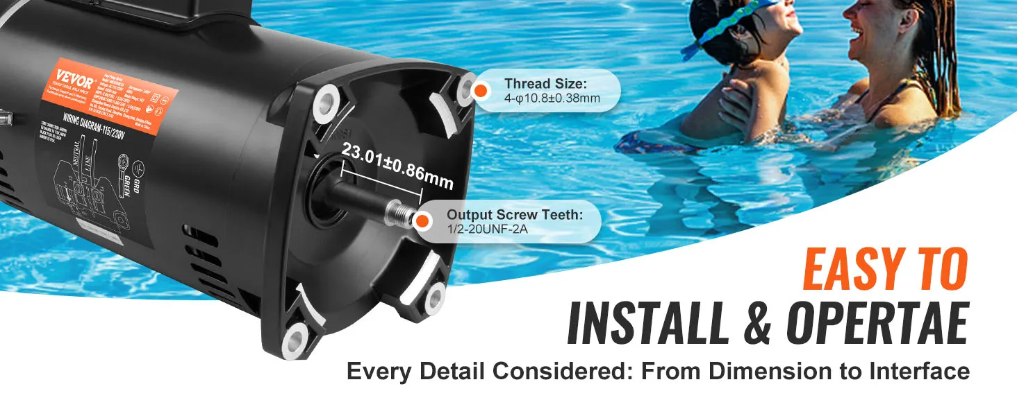 Der Ersatzmotor mit Vierkantflansch ist einfach zu installieren. Er wird mit klaren Anweisungen geliefert, die den Installationsprozess reibungslos gestalten. Dieser Motor passt perfekt zu den meisten Poolpumpengehäusen. Dieser Motor ist benutzerfreundlich konzipiert, sodass ihn auch Personen mit minimalen technischen Kenntnissen einrichten können. Dank der einfachen Installation können Sie Ihren Pool schnell in Betrieb nehmen. Dieser Motor eignet sich ideal für Heimwerker und alle, die eine problemlose Installation bevorzugen. Die einfache Installation spart Zeit und Mühe und ist daher einfach zu bedienen.