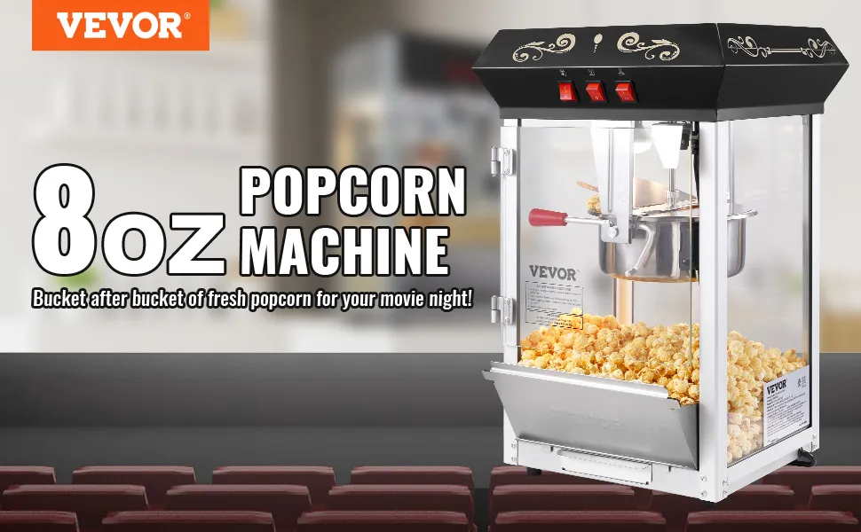 VEVOR Popcornmaschine Popcornautomat Popcorn-Maker, 850 W Popcornmaschine 8 oz Kessel für 48 Tassen pro Ladung, Popcornmaschine für die Arbeitsplatte mit gehärtetem Glas, inklusive 4 Schaufeln