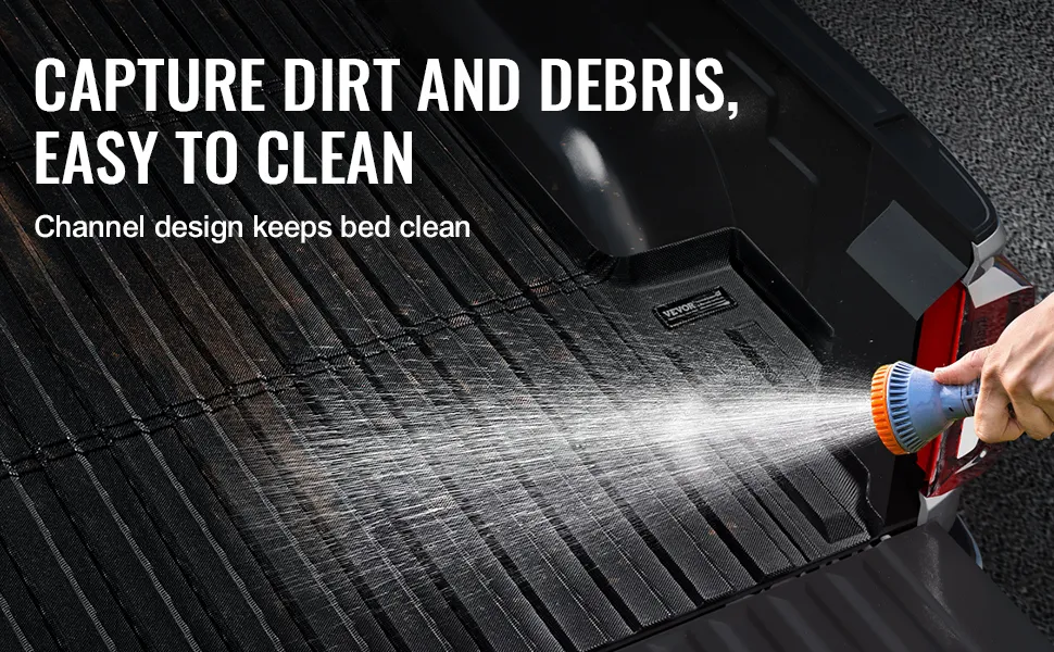 Leicht zu reinigen: Das hochdichte, wasserdichte Material der Lkw-Matte verhindert das Eindringen von Schlamm und Schmutz und ermöglicht ein schnelles Abspülen. Es behält auch nach längerem Gebrauch sein frisches Aussehen und hält Ihre LKW-Ladefläche sauber und ordentlich.