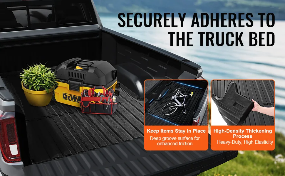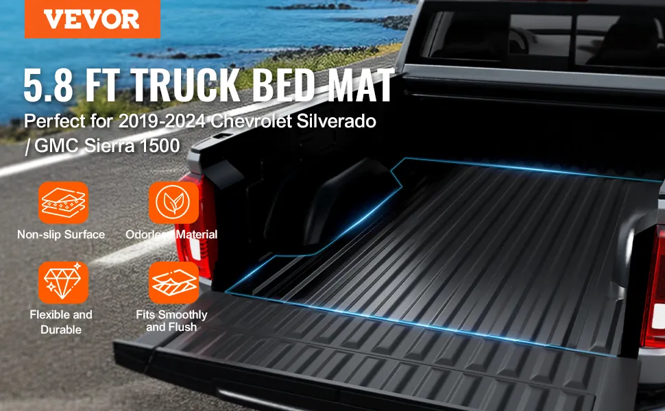 VEVOR Ladeflächenmatte für Lkw kompatibel mit 2019–2024 Chevrolet Silverado/GMC Sierra 1500, TPE-Ladeflächenmatte für Lkw 1510 x 1435 x 45 mm Ladeflächen, schwarze dicke Matratze Bettmatte