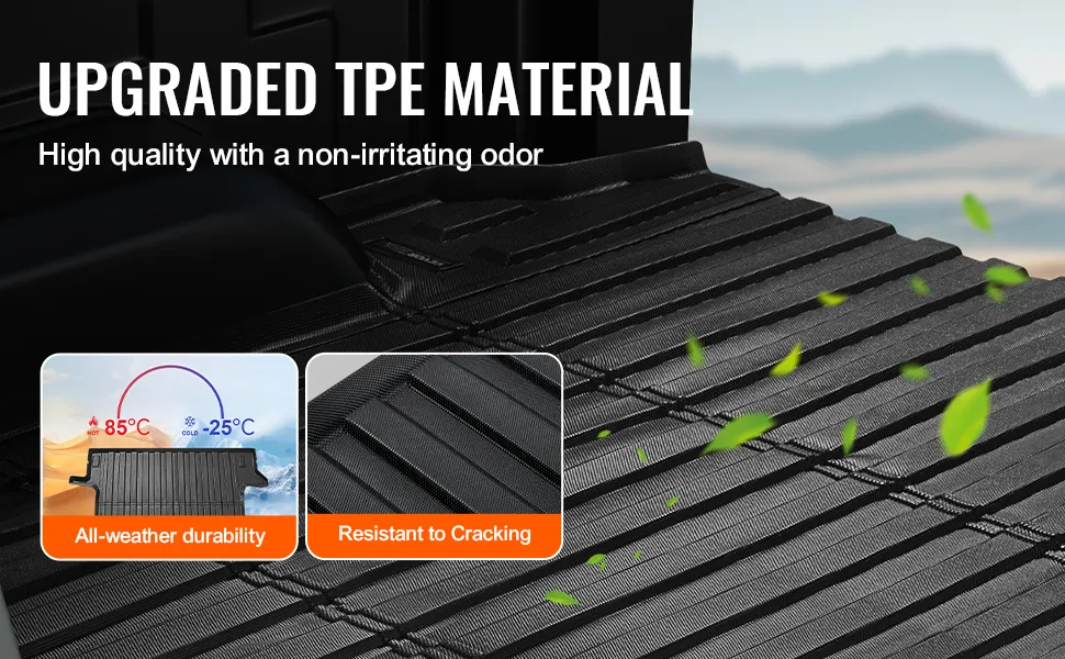 Geruchsfreies TPE-Material: Diese Ladeflächenmatte aus verbessertem, langlebigem TPE-Material hält allen Wetterbedingungen stand und schützt vor Witterungseinflüssen und scharfen Gegenständen. Sie ist frei von störenden Gerüchen und gewährleistet eine sichere Verwendung.