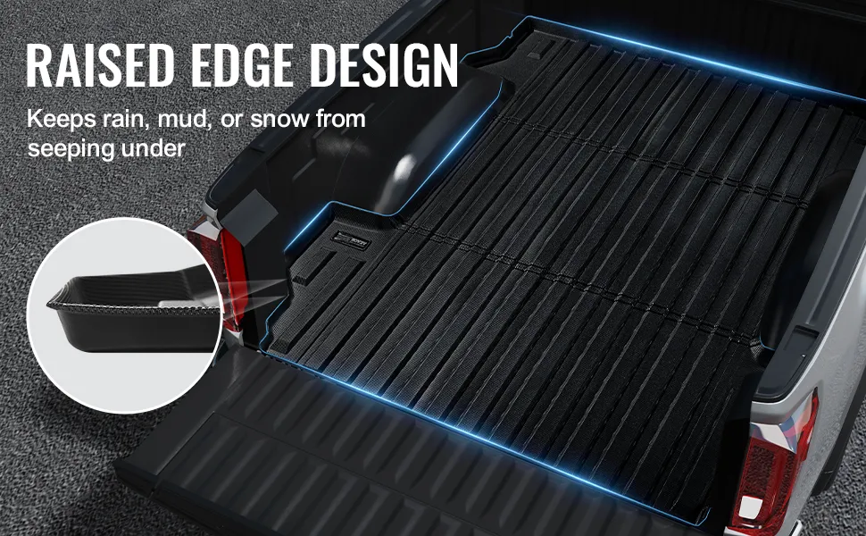 Vollständiges Rundum-Kantendesign: Das erhöhte Kantendesign um die Ladeflächenmatte für Lkw blockiert wirksam das Eindringen von Regenwasser, Schlamm und Schnee und verhindert so die Ansammlung von Schmutz.