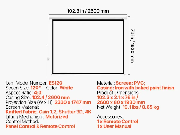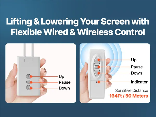 Mühelose Steuerung: Die Projektionsleinwand verfügt über eine 164 Fuß (50 m) lange kabellose Fernbedienung und eine kabelgebundene Touch-Bedienung, mit der Sie die Bildschirmhöhe mühelos anpassen können. Erleben Sie den Komfort nahtloser Steuerung mit Ihren Fingerspitzen