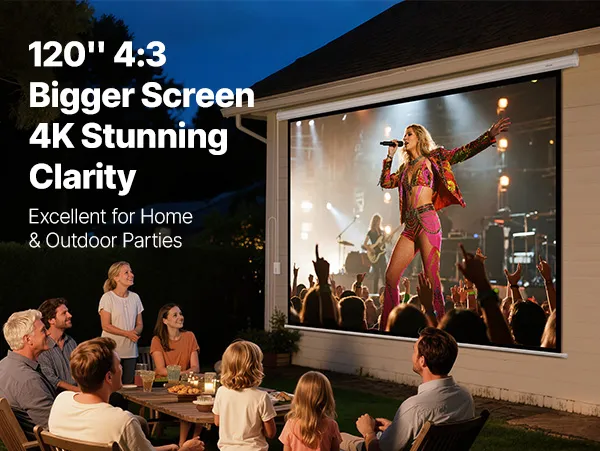 Vielseitig einsetzbar: Verabschieden Sie sich von den Einschränkungen kleiner Fernseher oder Monitore. Unsere motorisierte Projektionsleinwand bietet jederzeit und überall ein privates Kinoerlebnis. Ob drinnen oder draußen, jeder Zuschauer erlebt lebendige, kristallklare Bilder