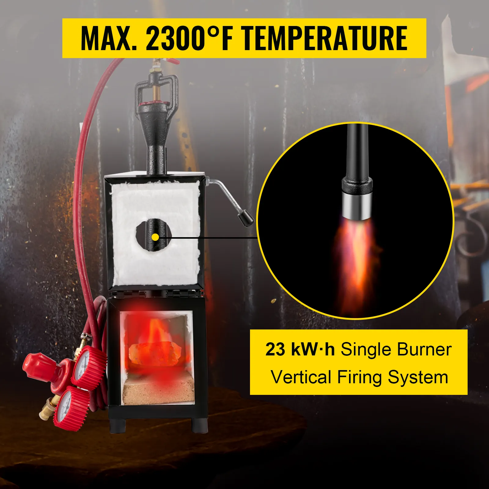 Unser Propangas-Messerschmied ist für Ihr Schmieden gebaut. Diese Schmiede kann eine ungefähre maximale Heiztemperatur von 2300 °F / 1300 °C, die genug für das Schmieden von Metallen ist. Und die 23 kWh / 80000 BTU Brenner kann die Heizung Effizienz mit dem Design einer vertikalen Feuerung zu maximieren.