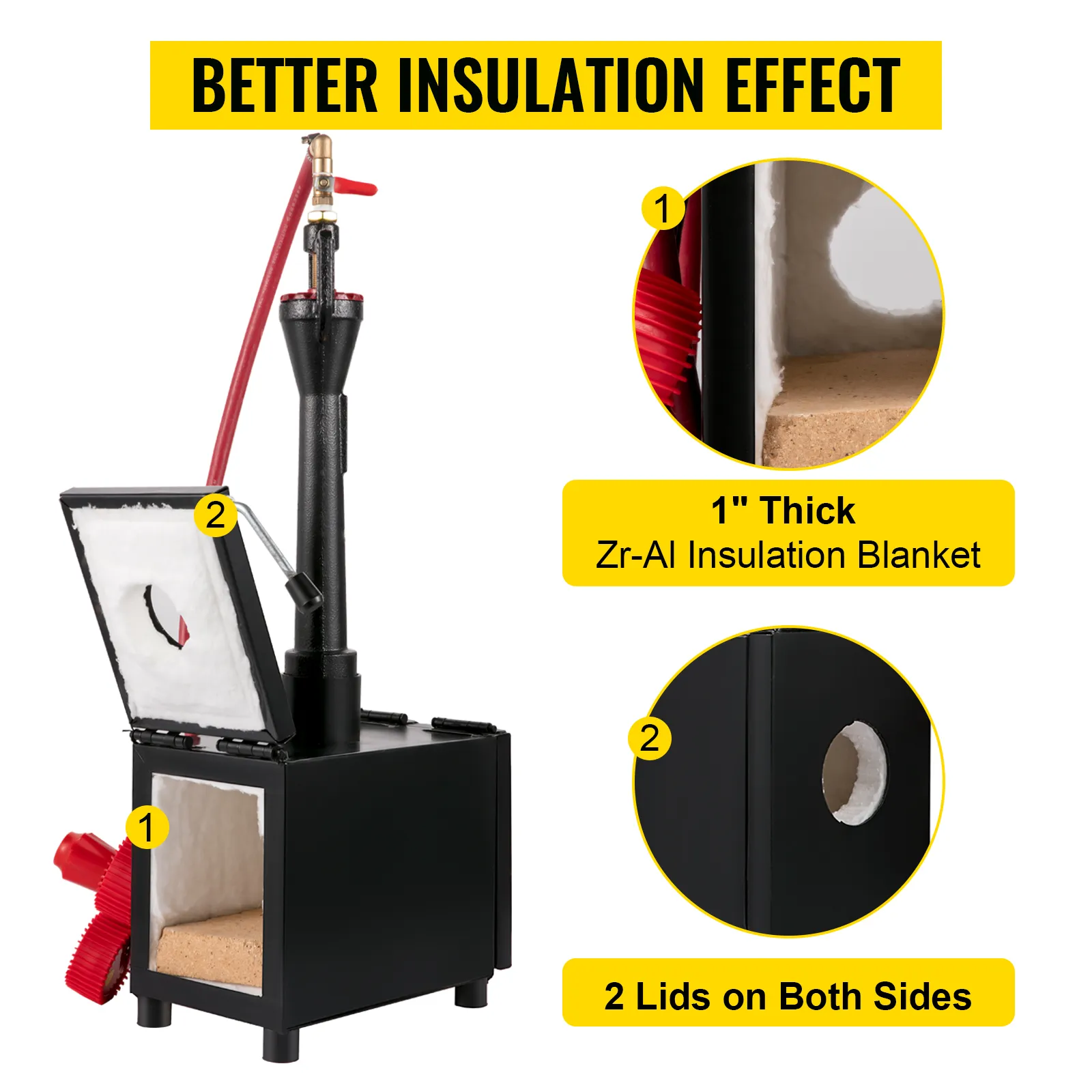 Bevor Sie die Propangasschmiede benutzen, müssen Sie die Isolierdecke konsolidieren, um die Staubentwicklung während der Benutzung zu reduzieren. Für eine bessere Isolierwirkung hilft die dicke Zr-Al-Isolierdecke, die Temperatur für längere Zeit zu halten.