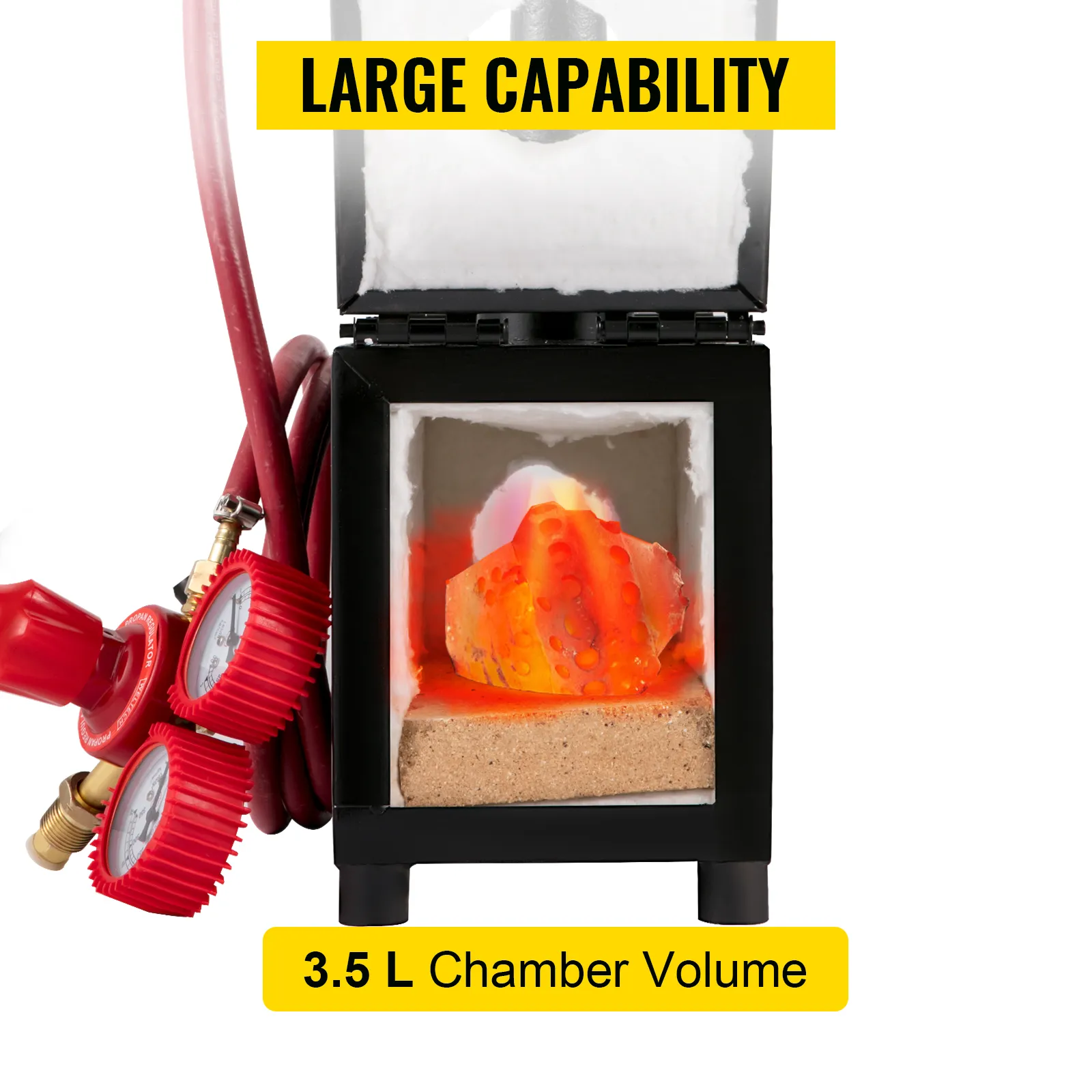 Mit unserer Propangas-Schmiede liefern wir ein ganzes Set an Zubehör für das Schmieden mit, darunter einen 9,8 Fuß / 3 m langen Gasschlauch, eine Ofenhalterung, einen Feuerstein, einen Hochtemperaturhandschuh und eine Zange. So können Sie Ihre Kreativität beim Schmieden voll entfalten.