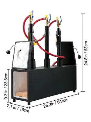 Diese Propan-Schmiede verfügt über einen geräumigen Arbeitsbereich und ermöglicht durch das entsprechende Kammervolumen eine ideale Ausrichtung auf den Flammenschwerpunkt. Das Gehäuse aus reinem, kaltgewalztem Eisen ist robust und langlebig.