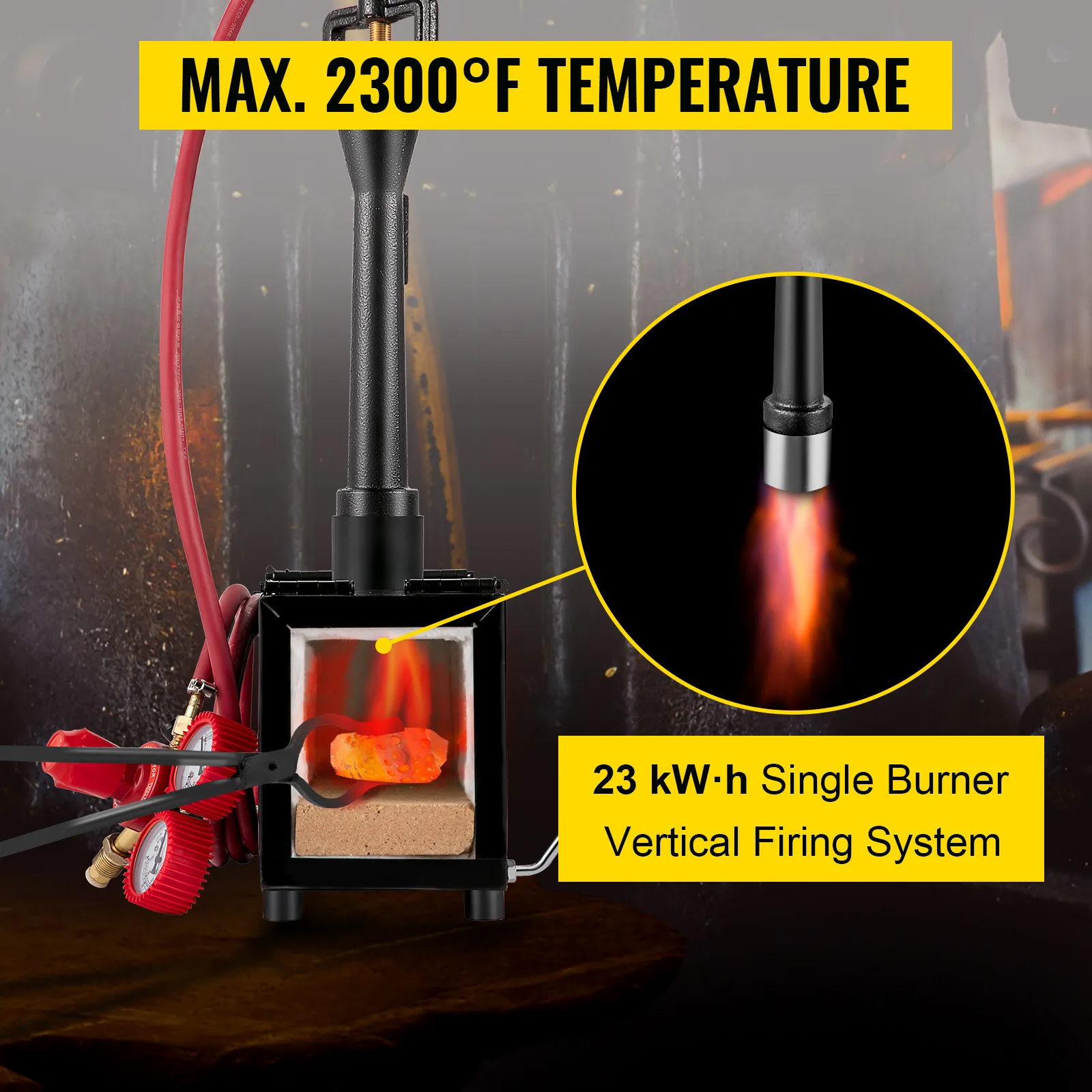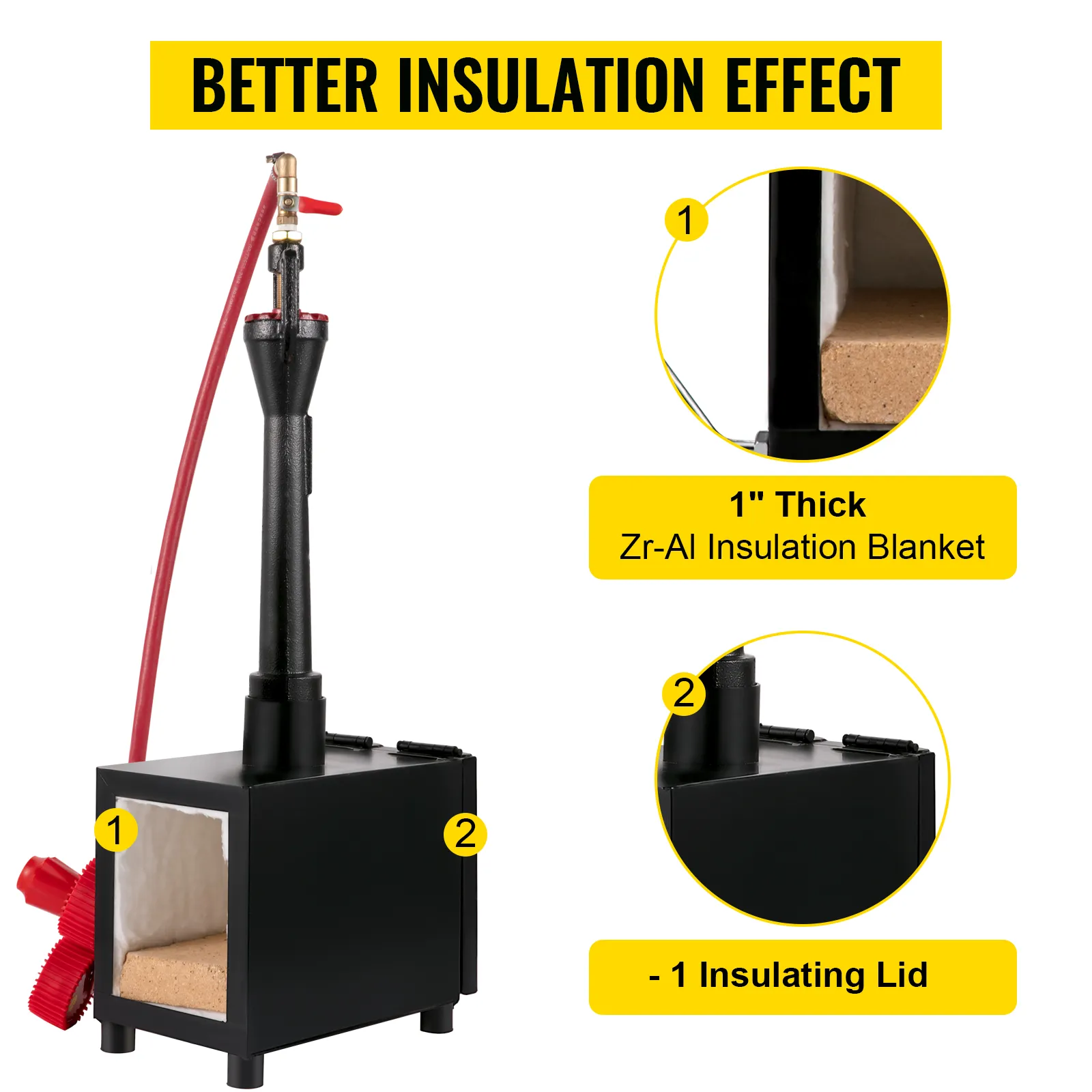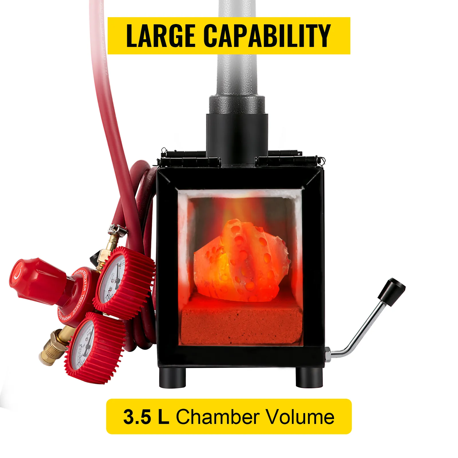 VEVOR Schmiedeofen Gasofen 1300 °C Gasbrenner Schmelzofen Propangas 3,5 L Stahl, Quadratisch Eintürig, Ofen aus Stahl 16 Gauge, Außenhülle Zr-Al-Isoliermatte, Leistung Max. 23 kWh / 80000 BTU