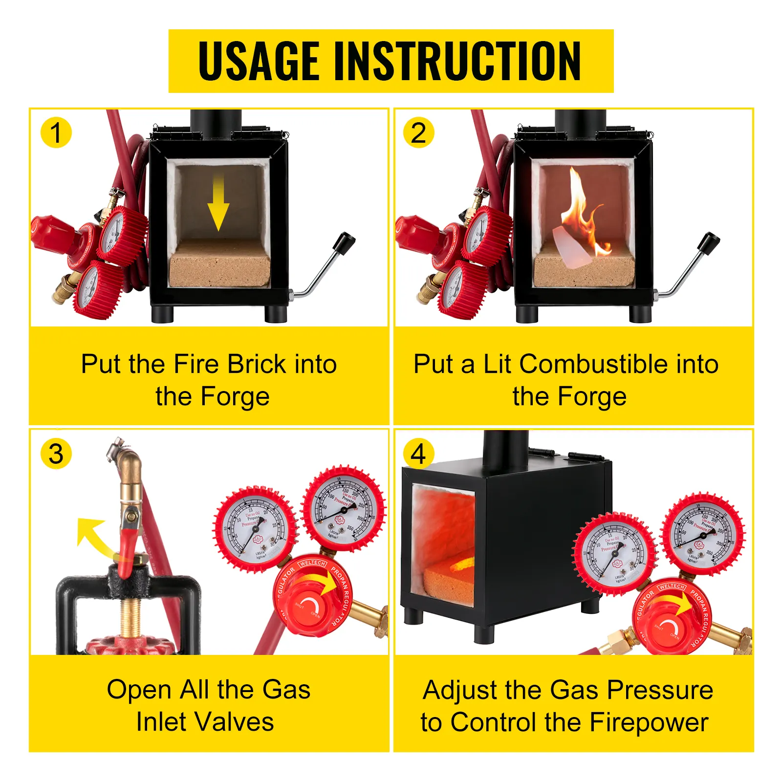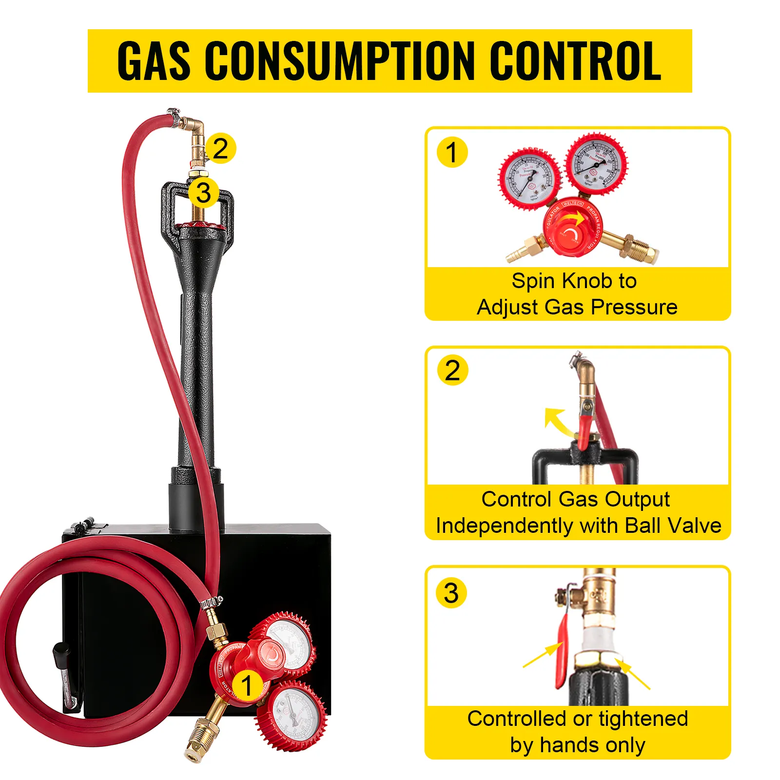 • Gasregulator & flexibel: Diese Hufschmiede hat die Funktion der Gasdruckeinstellung durch Drehen des Knopfes auf dem Gasdruckregler. Außerdem kann der Kugelhahn den Gasausgang unabhängig schalten.