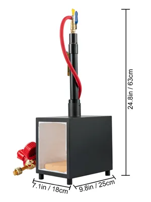 Diese Propan-Schmiede verfügt über einen geräumigen Arbeitsbereich und ein großes Kammervolumen. Idealer Zugang zum Flammenmittelpunkt. Das Gehäuse aus reinem, kaltgewalztem Eisen ist robust und langlebig.