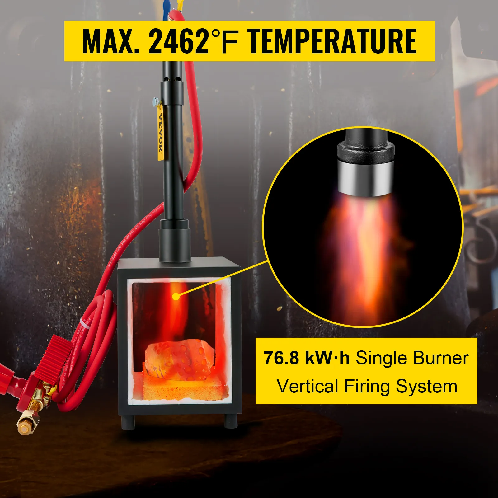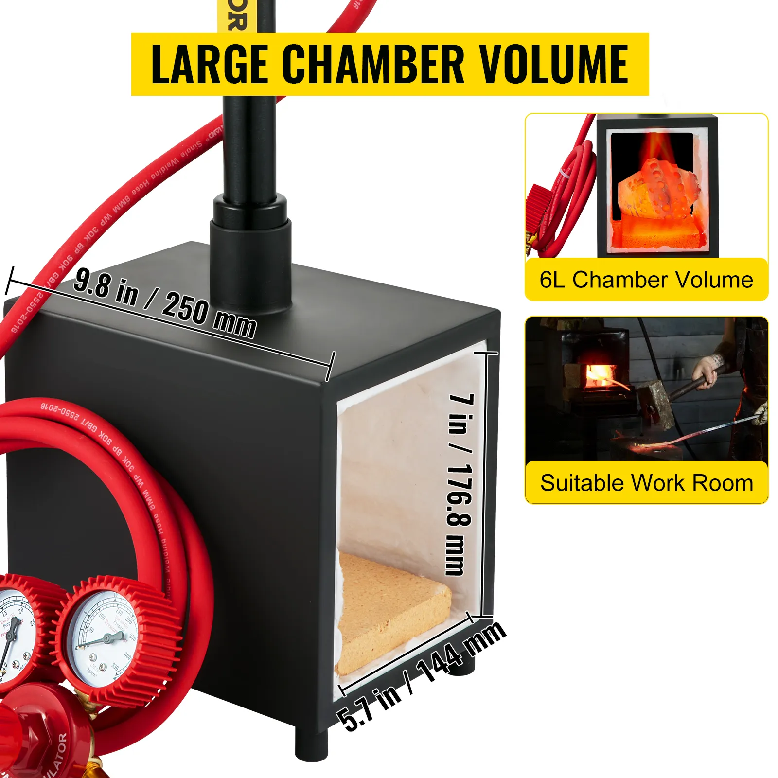 Propan Messerschmiede mit vertikal ausgelegtem Feuerungssystem. Maximale erreichbare Heiztemperatur ca. 2462 °F / 1350 °C. Ideal zum Metallschmieden. Maximale Brennerleistung beträgt: 76,8 kWh / 262.000 BTU.