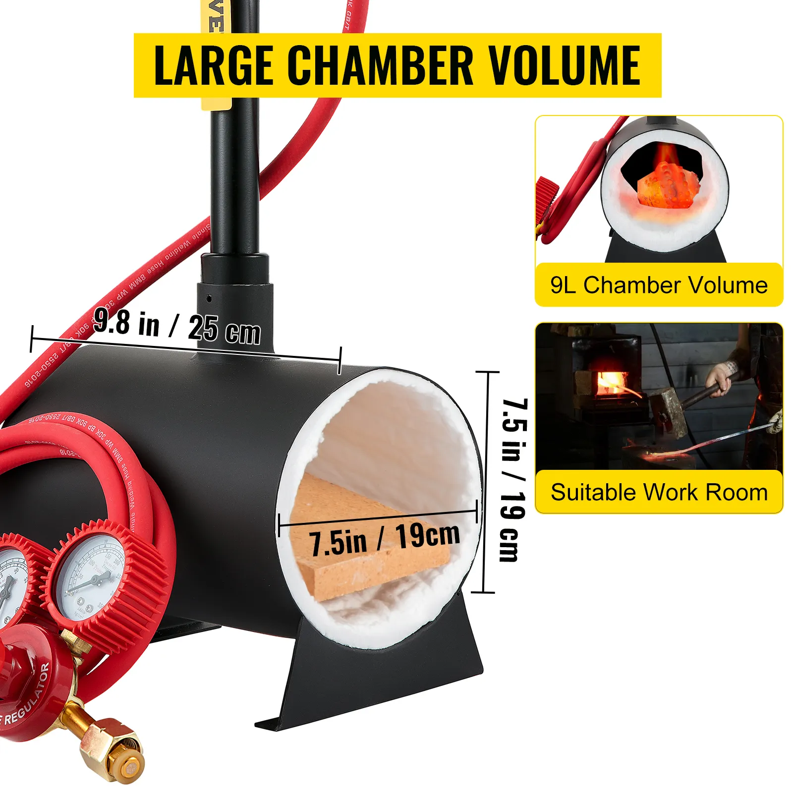 Unsere Schmiede besitzt ein großer Arbeitsbereich. Das ordentliche Kammervolumen bietet leichten Zugang zum Flammenschwerpunkt. Das Gehäuse besteht aus kaltgewalztem Eisen und ist für den Dauereinsatz geeignet.