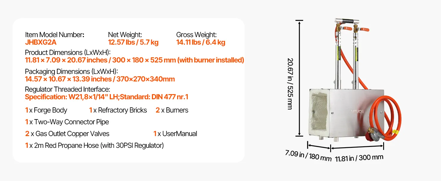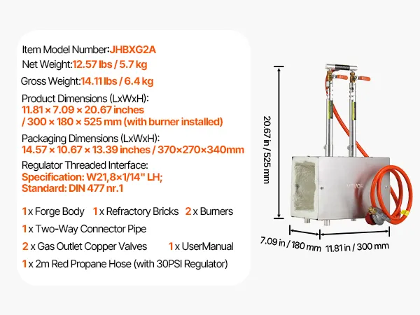 VEVOR tragbare Propangas-Schmiede mit 2 Brenner 1427 °C, Hufschmiede Schmiedeofen mit quadratischer Form, Edelstahl, Gasschmiedewerkzeuge und -ausrüstung, Schmelzofen Verwendung zum Metallschmieden