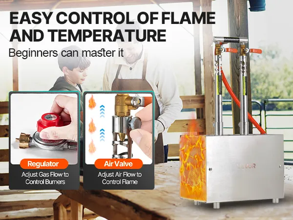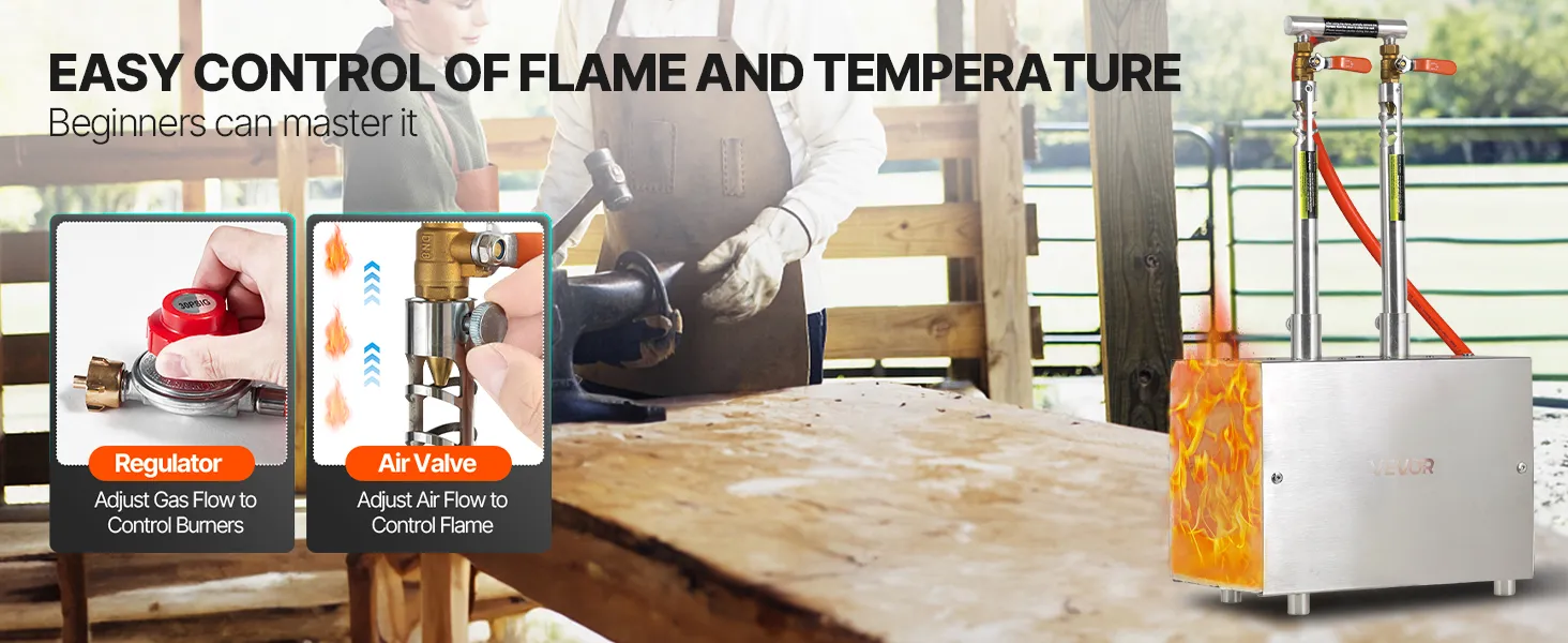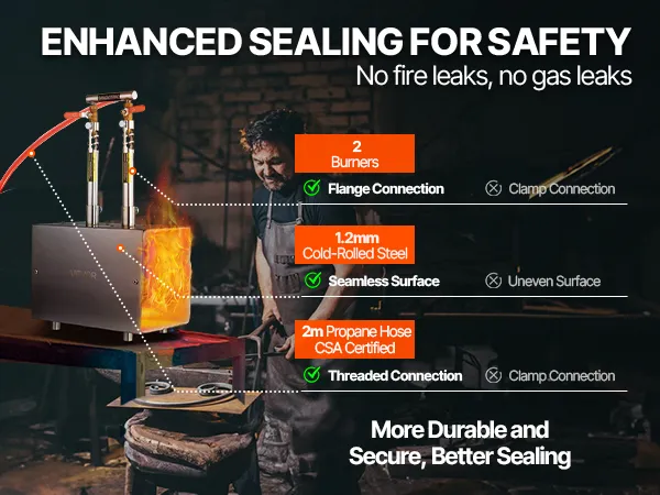 Verbesserte Verarbeitung & Langlebigkeit: Die hochwertige Verarbeitung erhöht die Sicherheit während der Produktion. Hergestellt aus korrosionsbeständigem Edelstahl 201, widersteht diese Propanschmiede hohen Temperaturen und Rauchgasen und gewährleistet so eine lange Lebensdauer