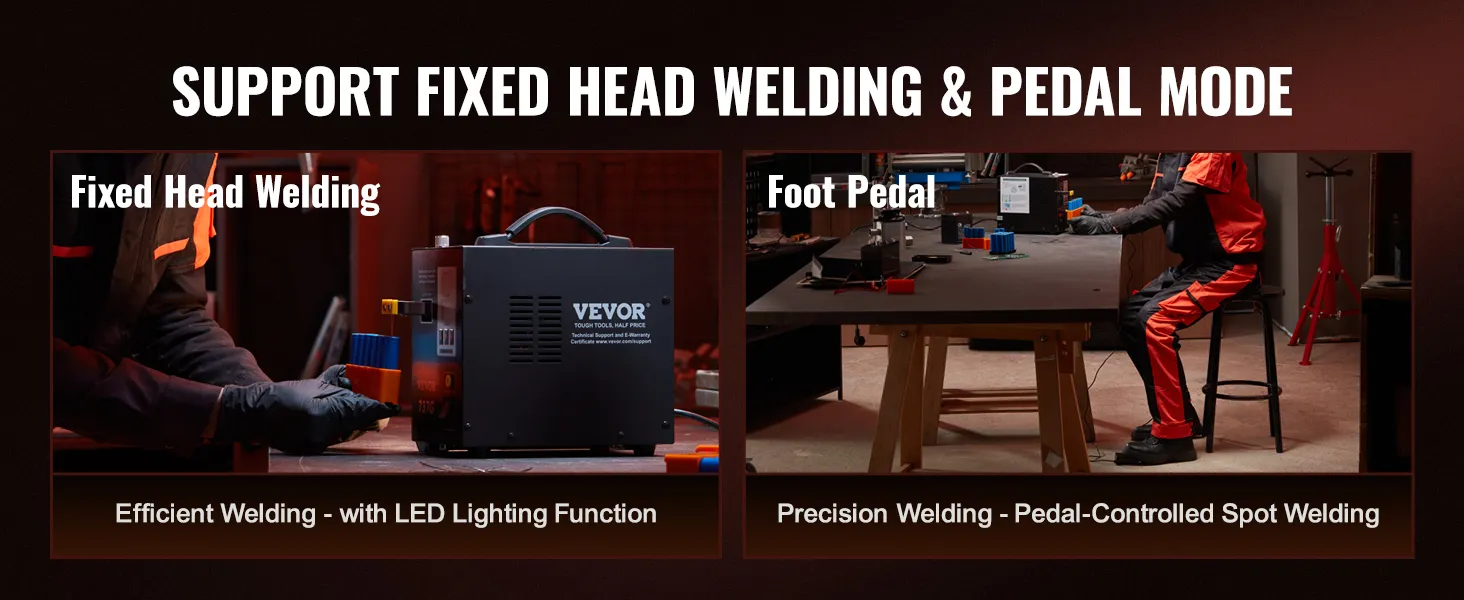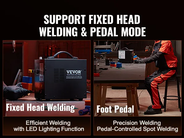 2 Schweißmodi: Wählen Sie zwischen zwei Schweißmodi – Schweißen mit festem Kopf oder Fußpedalmodus – passend zu Ihren Anforderungen beim Aufbau des Akkupacks. Darüber hinaus verfügt die Schweißspitze über eine LED-Beleuchtungsfunktion, die auch in Umgebungen mit schlechten Lichtverhältnissen präzises Schweißen gewährleistet.