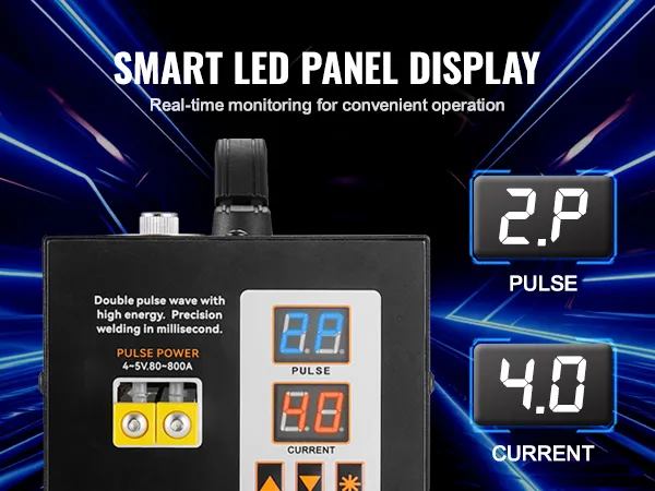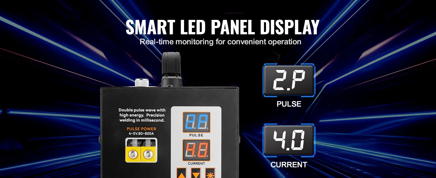 Ausgestattet mit einem intelligenten LED-Panel-Display kann dieses Punktschweißgerät mit Lithiumbatterie die Schweißleistung und den tatsächlichen Schweißstrom in Echtzeit überwachen.