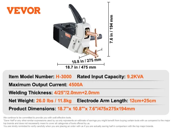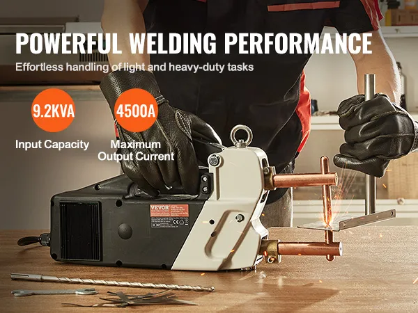 VEVOR Tragbares Punktschweißgerät, 0,4064 cm Punktschweißgerät mit 9,2 KVA Eingangsleistung, Handgeführtes Punktschweißgerät mit Schweißspitze für Bleche für Kohlenstoffstahl, Edelstahl, Aluminiumblec