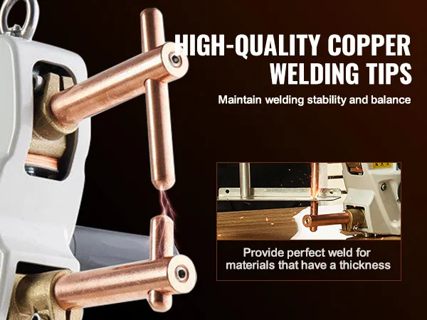 Das Punktschweißgerät verwendet hochwertige Kupferspitzen, ist verschleißfest, korrosionsbeständig und hat eine lange Lebensdauer. Es bietet perfekte Schweißnähte für dicke Materialien und gewährleistet die Stabilität und Zuverlässigkeit Ihrer Schweißarbeiten.