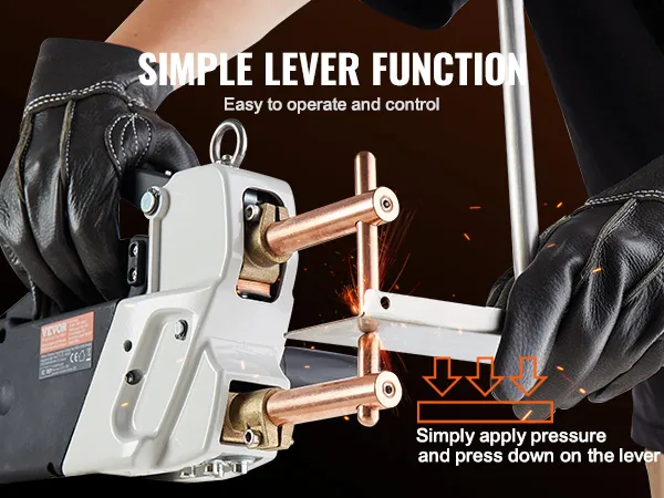 Unser Punktschweißgerät ist mit einer einfachen Hebelfunktion für eine einfache Bedienung ausgestattet. Üben Sie einfach Druck auf den Hebel aus und drücken Sie den Steuerhebel nach unten, um Schweißaufgaben mühelos abzuschließen.
