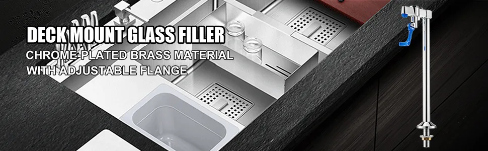 Der Sockelglasfüller kann auf dem Deck einer Spüle installiert werden. Drehen Sie einfach den Flansch, um den Abstand von der Wasserfeile zum Deck entsprechend Ihren Anforderungen zu steuern.