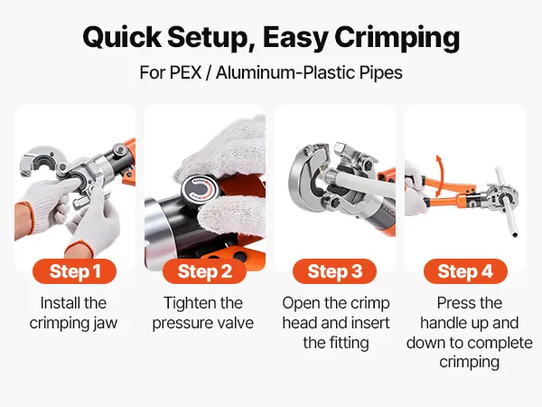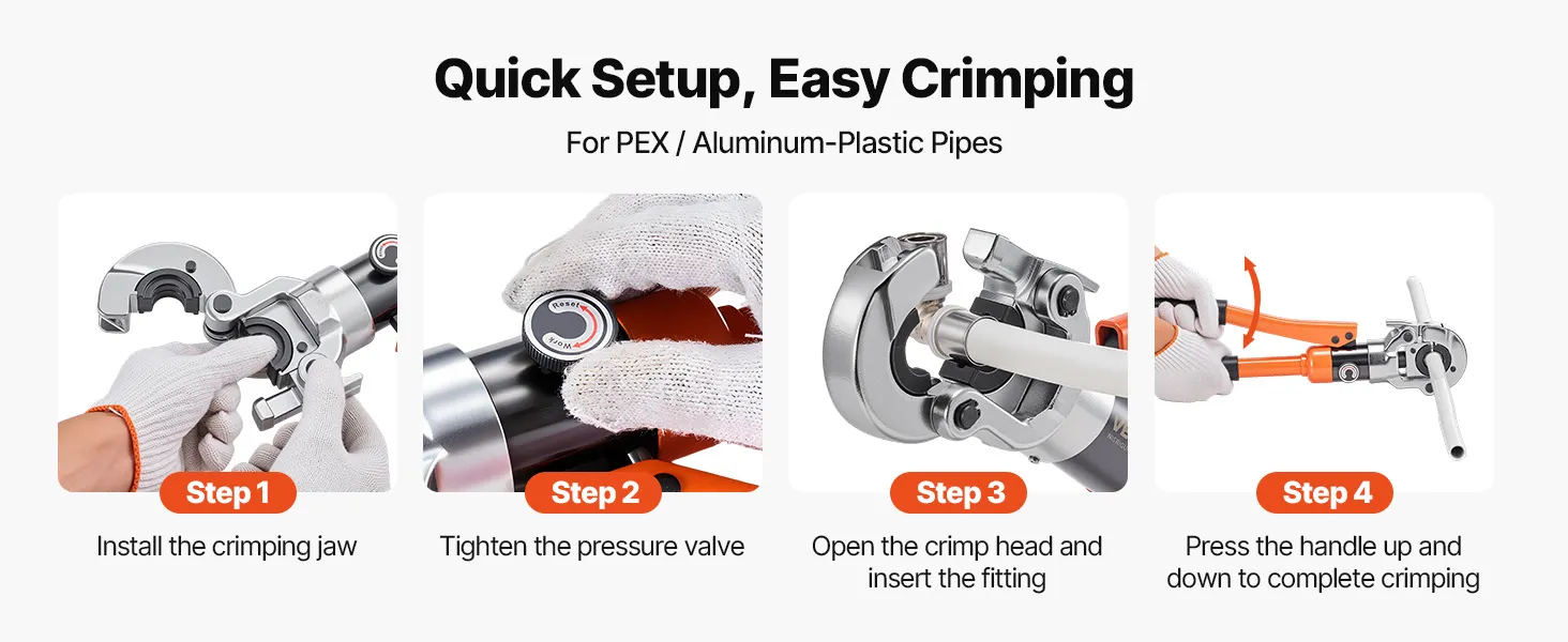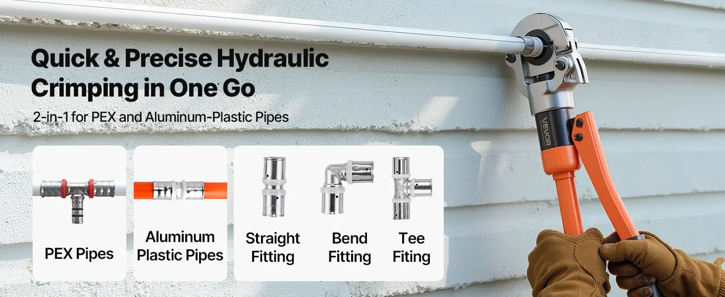 Ideal für verschiedene Rohrleitungsszenarien, ob für Neuinstallationen, Renovierungen oder Reparaturen, liefert effiziente Crimp-Ergebnisse und zuverlässige Rohrverbindungen.