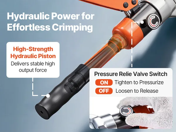 Das effiziente Hydrauliksystem sorgt für kraftvollen, gleichmäßigen Druck bei reduziertem Kraftaufwand. So gelingen Ihnen gleichmäßige Crimpvorgänge – das spart Zeit und reduziert die Ermüdung bei langen Arbeitseinsätzen.