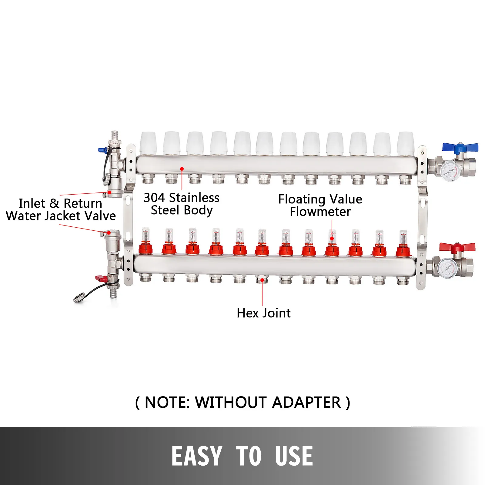 【STARKE KOMPATIBILITÄT】 - Der PEX-Verteiler mit 12 Schleifen ist mit allen Arten von PEX-Rohren kompatibel. Es ist kein spezieller Adapter erforderlich. Keine 5/8" Adapter / Druckmuttern.