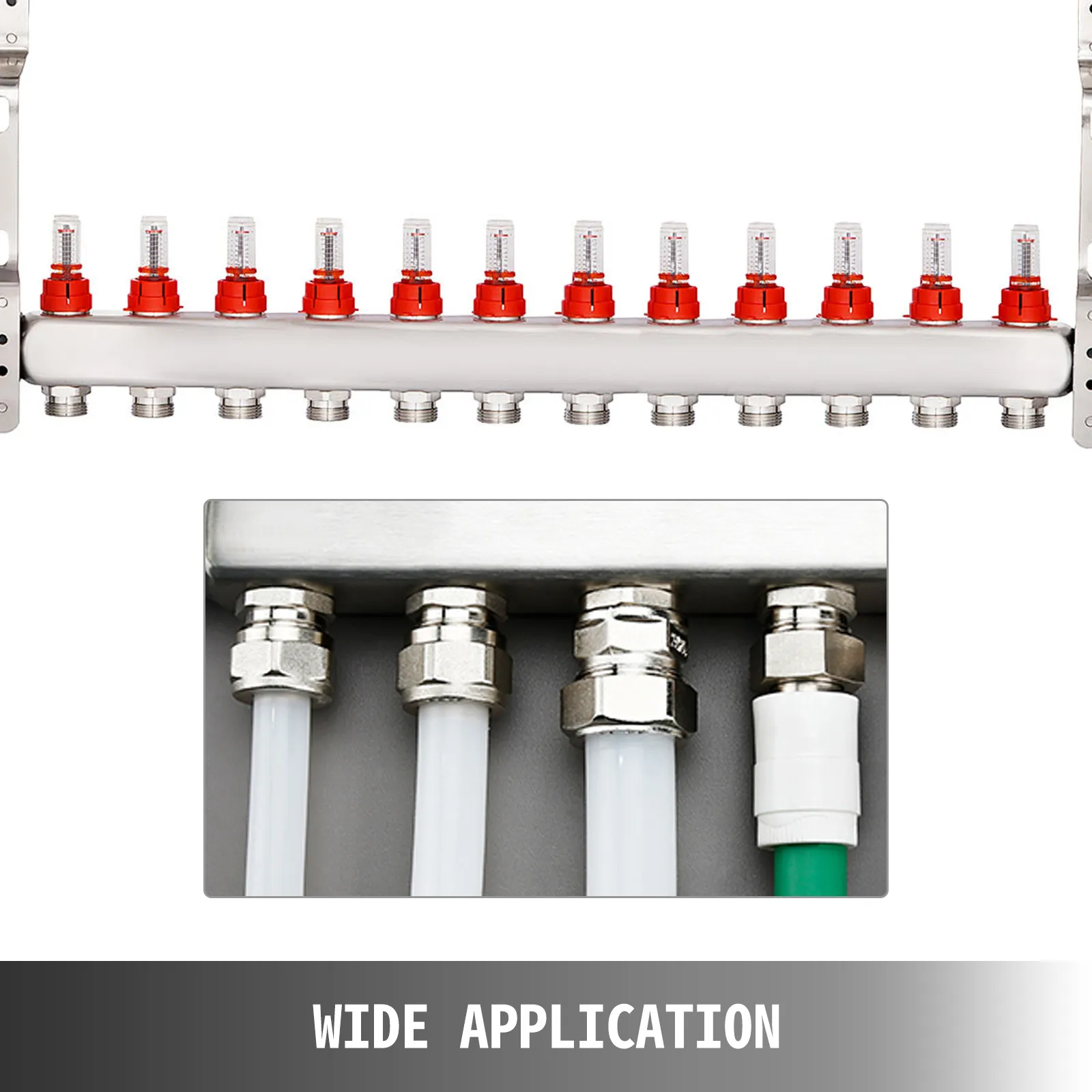 【NUTZUNGSINFORMATIONEN】 - Der PEX-Verteiler verfügt über 12 Anschlüsse, der Temperaturbereich beträgt 35-65 ℃ und der maximale Abzweigfluss beträgt 1,4 GPM.