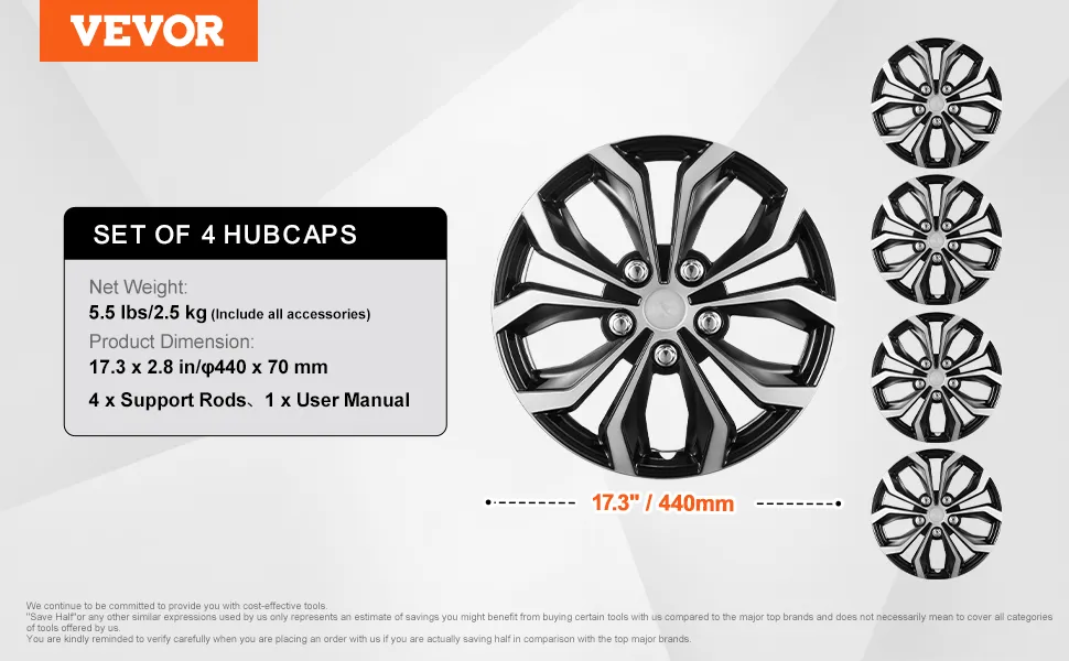 VEVOR Radkappen Radnabenkappen Felgenabdeckung für 16 Zoll Durchmesser, langlebige kratzfeste Radkappe mit Druckknopf und Ventildüsenloch, ABS- und PC-Radkappe mit hoher Steifigkeit wetterfest