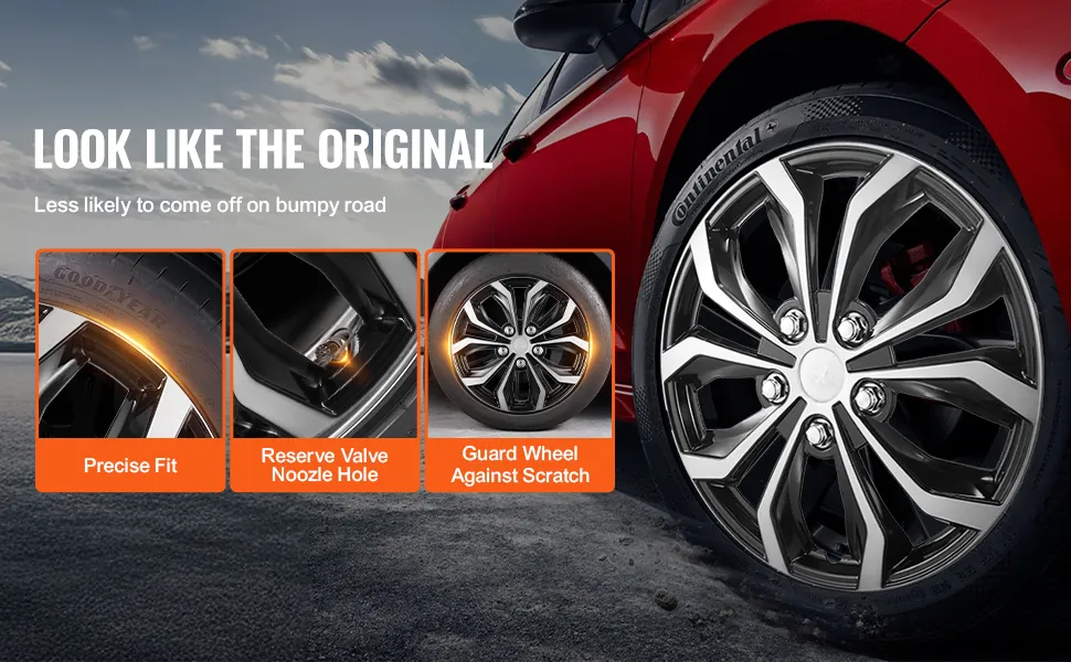 Wählen Sie die Radzierblenden entsprechend Ihrer Reifengröße für einen perfekten Sitz. Unser intelligentes Design sorgt dafür, dass sie nicht nur gut aussehen, sondern auch genauso zuverlässig schützen wie die Originale.