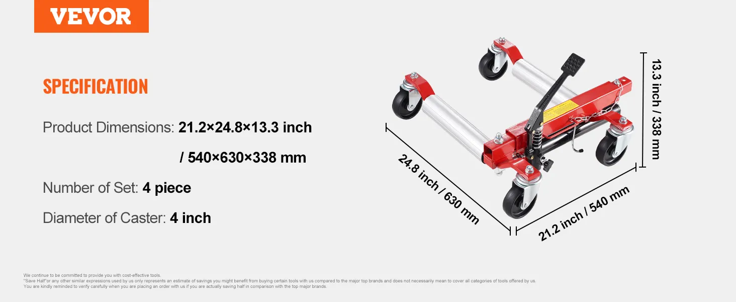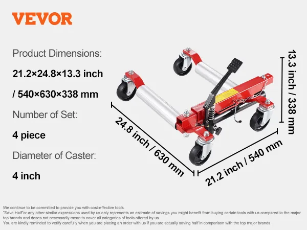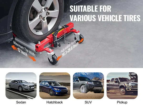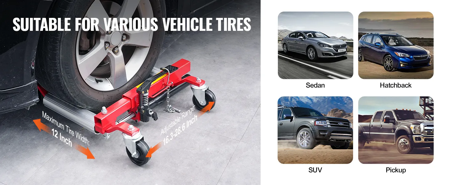 Unser Wagenheber mit einer maximalen Reifenbreite von 12 Zoll (305 mm) ist mit den meisten Fahrzeugmodellen kompatibel. Mit unserem leistungsstarken Wagenheber können Sie Fahrzeuge bewegen, Wartungsarbeiten durchführen und Reifen mühelos wechseln.