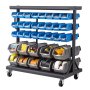VEVOR Fahrregal mit Stapelboxen Set, Mobiles Lagerregal mit 5 Ebenen & 68 Sortimentskästen für Kleinteile in zwei Größen, 900x500x950 mm, doppelseitig, für Werkstatt, Garage, Lager & Büro