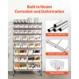 Jedes Regal des Stapelboxen-Organizers trägt bis zu 52,2 kg und ist somit für den täglichen Gebrauch bestens geeignet. Der pulverbeschichtete Rahmen aus Q195-Stahl ist verschleißfest, während die robusten PP-Behälter und die erhöhten Schienen dafür sorgen, dass Ihre Gegenstände immer griffbereit sind.