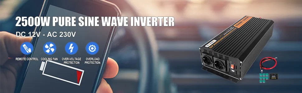 Ein Stromrichterauto wurde speziell für Geräte entwickelt, die einen sorgfältigen Schutz benötigen, um eine stabilere Sinuswellenleistung zu erzielen: 2500 W Reiner Sinus-Wechselrichter, 5000 W Spitzenleistung.