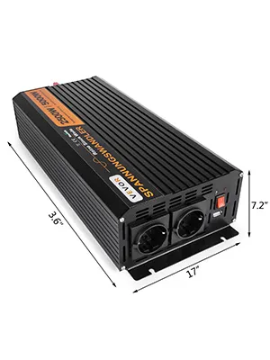 Reine Sinus-Wechselrichter sind für Geräte konzipiert, die einen sorgfältigen Schutz erfordern. Es kann DC 12 V in AC 230 V mit einem Wirkungsgrad von bis zu 94 % umwandeln. Der Wechselrichter verfügt über einen umfassenden Sicherheitsschutz und eine automatische Spannungsregelung (AVR). Reine Sinuswellen werden häufig in induktiven Lasten wie Notebooks, Linearadaptern, Schaltnetzteilen, Transformatoren, Motoren, Gefriergeräten, Lüftern usw. verwendet.