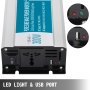 LED-Leuchte: Blaue Kontrollleuchte - Wechselrichterausgang, regulärer Betrieb. Die rote Anzeige blinkt - Unter- / Überspannung, Überlast, Temperatur, Kurzschluss. Der USB-Anschluss kann problemlos an Mobiltelefone und andere Geräte angeschlossen werden.
