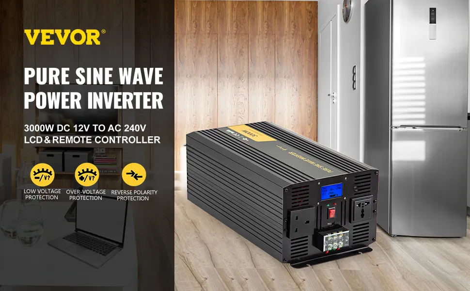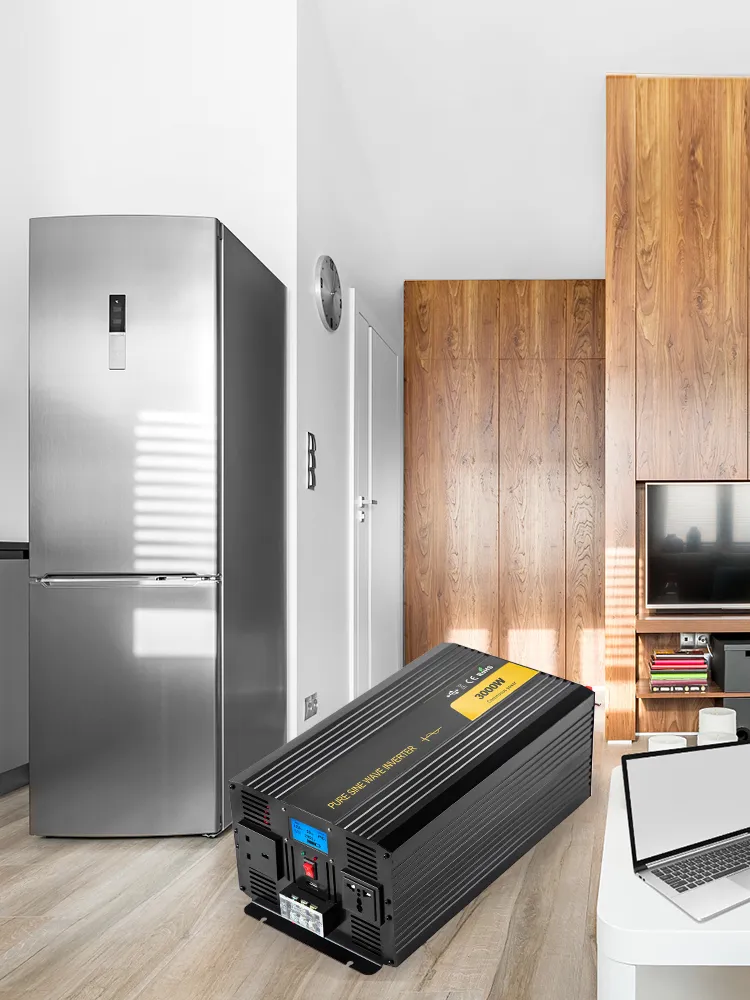 Dieser Wechselrichter mit reiner Sinuswelle verfügt über Aluminiumlegierung, einen LCD-Bildschirm, eine LED-Anzeige, einen intelligenten Lüfter, mehrere Schutzmaßnahmen sowie eine Fernbedienung. Bei diesem reinen Sinus-Wechselrichter mit 12 V Gleichstrom folgt der 240 V Wechselstromausgang harmonisch einer glatten Sinuswelle und ist nahezu identisch mit normalem Netzstrom. Dieser reine Sinus-Wechselrichter wird dringend für empfindliche elektronische Geräte empfohlen, für deren effektiven Betrieb sauberer Wechselstrom erforderlich ist. Es ist kompatibler und wird häufig in solche Bereiche eingesetzt, z. B.: Bürokommunikation, Unterhaltungselektronik, Haushaltsgeräte sowie Küchengeräte.