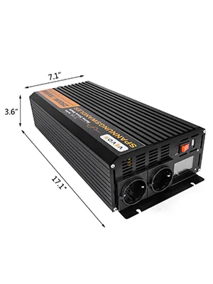 Reine Sinus-Wechselrichter sind für Geräte konzipiert, die einen sorgfältigen Schutz erfordern. Es kann DC 12 V in AC 230 V mit einem Wirkungsgrad von bis zu 94 % umwandeln. Der Wechselrichter verfügt über einen umfassenden Sicherheitsschutz und eine automatische Spannungsregelung (AVR). Reine Sinuswellen werden häufig in induktiven Lasten wie Notebooks, Linearadaptern, Schaltnetzteilen, Transformatoren, Motoren, Gefriergeräten, Lüftern usw. verwendet.